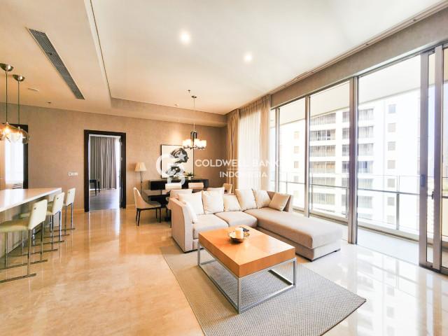 Fo rent Pakubuwono Spring Tower Applewood apartment with an area of 170 m2. This unit consists of 2 bedrooms, 2 bathrooms, and a maid area. This unit is located on a high floor, uses a private elevator, and is fully furnished.