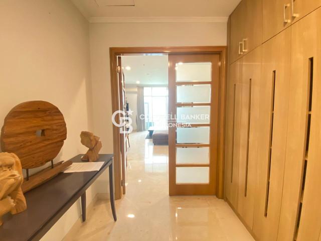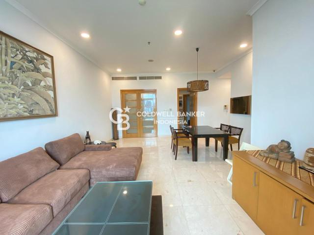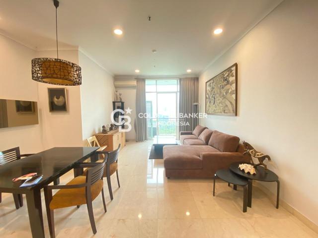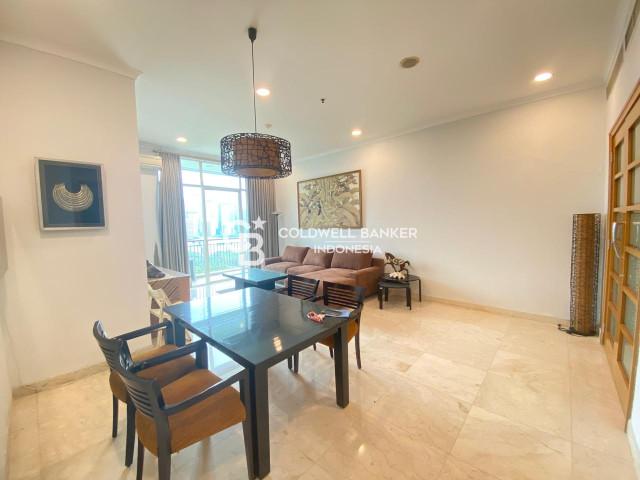 Senayan Residence Apartment for rent, Tower 1, with an area of 150 m2. This unit consists of 3 bedrooms, 2 bathrooms, and a maid area. This unit is located on the 18th floor and is already fully furnished.