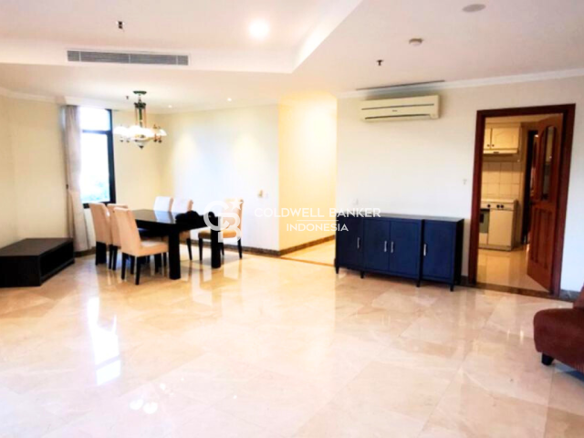 Dijual Apartemen Kusuma Candra, Tower B dengan luas 149 m2. Unit ini terdiri dari 3 kamar tidur, 2 kamar mandi, dan maid area. Unit ini terletak di lantai 3 dan sudah dalam kondisi fully furnished