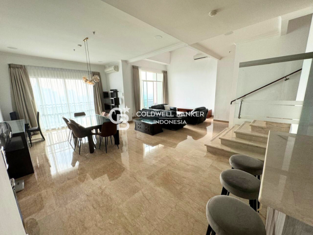 Dijual Apartemen Senayan Residence tipe Junior Penthouse, Tower 2 dengan luas 305 m2. Unit ini terdiri dari 2 lantai, dengan 4 kamar tidur, 4 kamar mandi + 1 powder room, dan maid area. Unit ini terletak di lantai 23 dan sudah dalam kondisi fully furnished